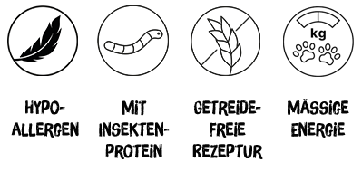 Insektenprotein ist eine hochwertige, leicht verdauliche und hypoallergene Proteinquelle für Hunde. Da Insektenprotein eine neuartige Eiweissquelle ist, reagieren Hunde mit Allergien oder Unverträglichkeiten gegenüber anderen tierischen Proteinen meist sehr positiv darauf. Mit Insektenprotein als einziger tierischer Proteinquelle im kyli Hypoallergenic InsectoDog bekommt dein Hund eine hypoallergene Ernährung, die nicht nur besonders gut verträglich, sondern auch nachhaltig ist.