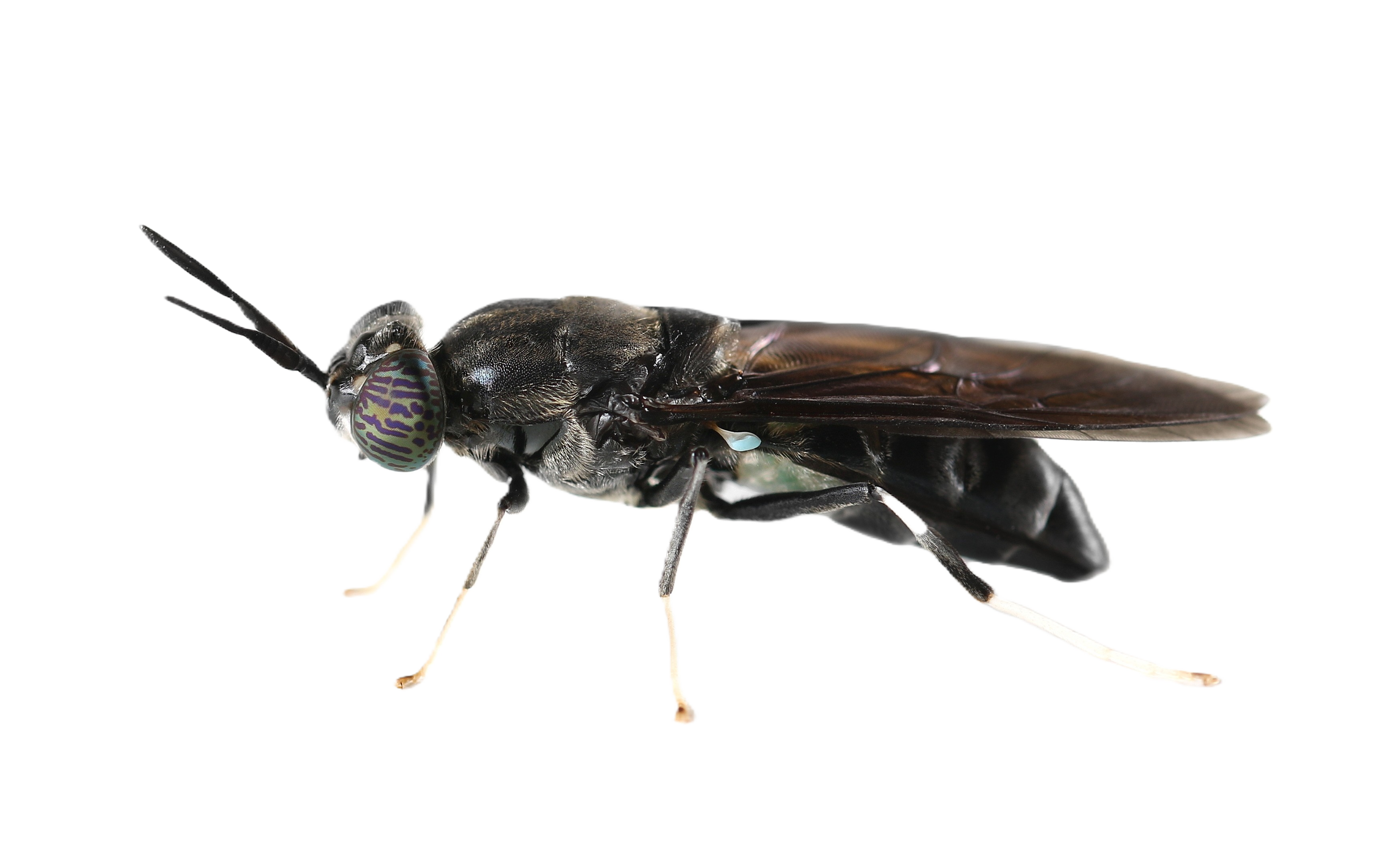 Die am häufigsten verwendeten Insekten in Hundefutter sind Schwarze Soldatenfliegen und Mehlwürmer.
