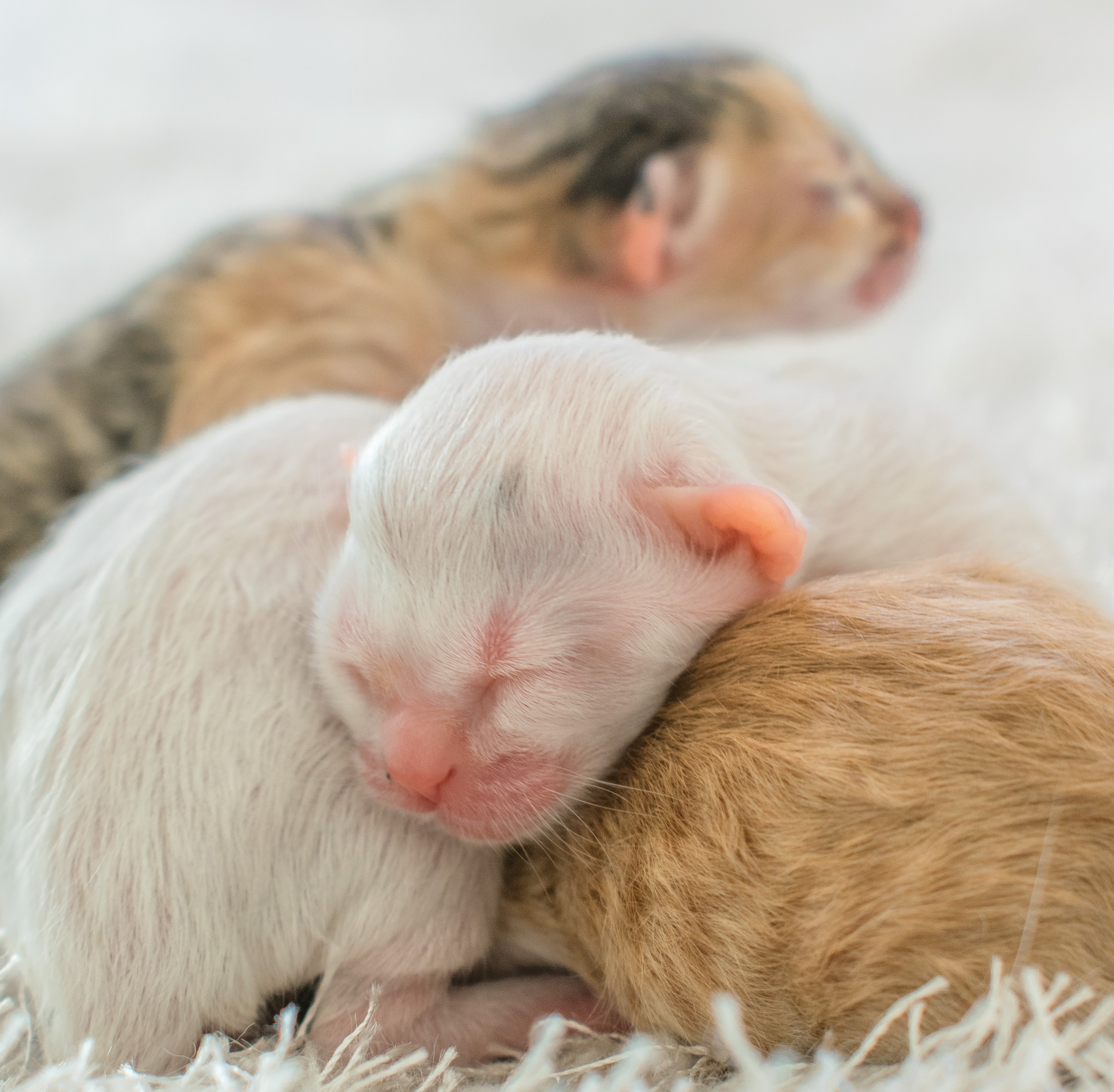 Die neonatale Phase umfasst etwa die ersten zwei Lebenswochen. In dieser Zeit sind Kätzchen blind und taub. Sie sind nicht in der Lage, ihre Körpertemperatur selbst zu regulieren. Deswegen sind sie vollständig auf die Wärme, Pflege und die Muttermilch ihrer Mama angewiesen.
