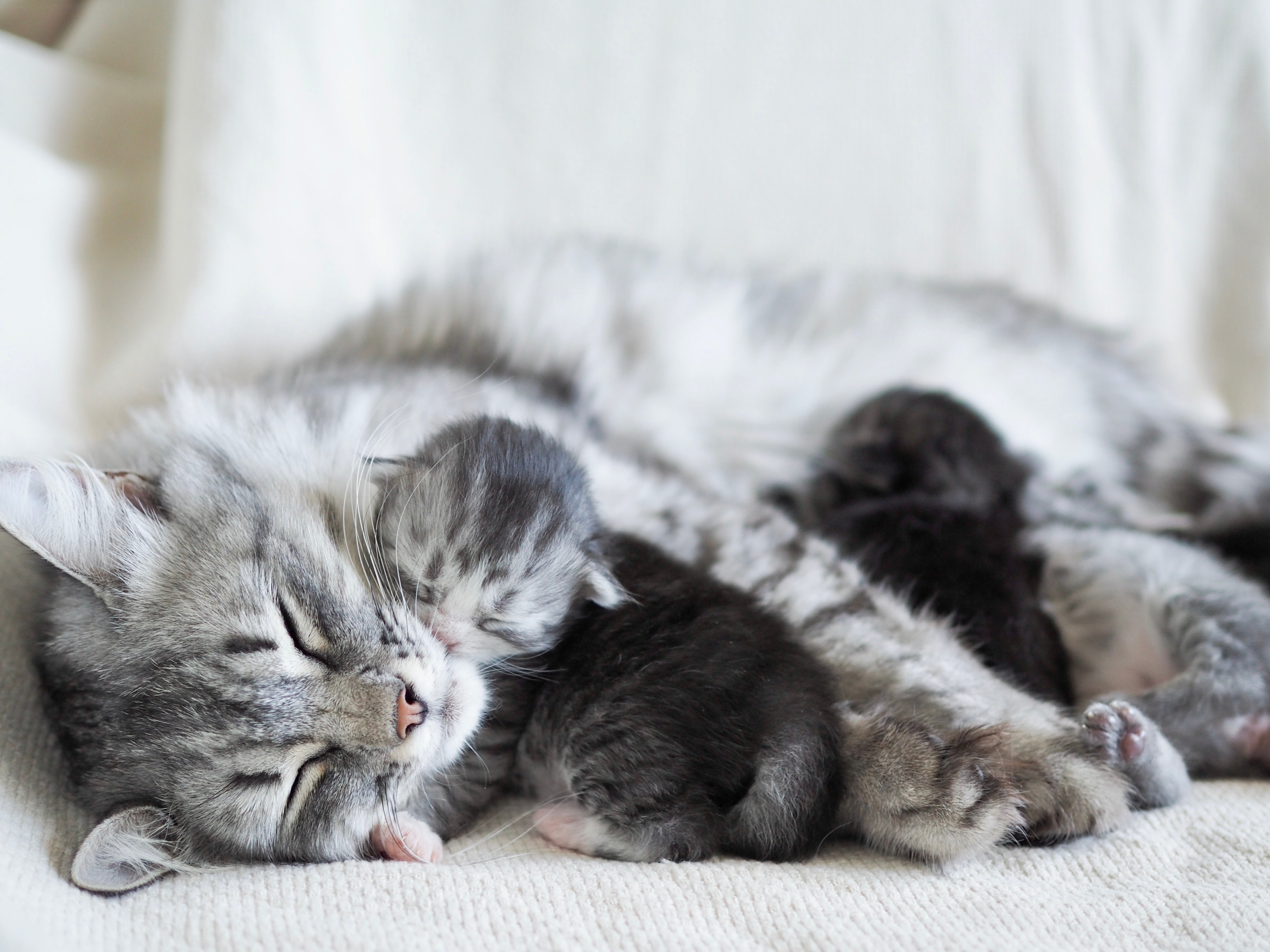 Die Geburt von Katzen ist ein natürlicher Prozess, der normalerweise ohne menschliches Eingreifen abläuft. Eine Katze trägt ihre Kätzchen für ungefähr 58 bis 65 Tage, bevor, je nach Rasse und Alter der Katze, drei bis sechs Kätzchen die Welt erblicken. Während der Geburt zieht sich die Katze in der Regel an einen abgelegenen und sicheren Ort zurück, um ihre Jungen zur Welt zu bringen. Das Gebären der Kitten kann zwischen 2 und 24 Stunden dauern. Die Kätzchen kommen in der Regel in einem Abstand von 30 bis 45 Minuten zur Welt, doch manchmal kann es sogar über eine Stunde dauern.